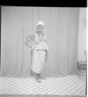 273. EAP449/2/12/273 Reference (shelfmark): EAP449/2/12/273 Title: A woman in a large skirt standing in profile in the studio. Collection Area: Endangered Archives Programme Languages: Not applicable Date Range: 2nd half od the 20th century Extent: 1 TIFF image