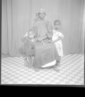280. EAP449/2/12/280 Reference (shelfmark): EAP449/2/12/280 Title: A woman in a large dress and headscarf sitting facing forward in the middle of two children standing in the studio. Collection Area: Endangered Archives Programme Languages: Not applicable Date Range: 2nd half od the 20th century Extent: 1 TIFF image