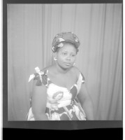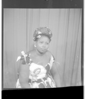 364. EAP449/2/12/364 Reference (shelfmark): EAP449/2/12/364 Title: A woman in a dress and headscarf sitting in profile in the studio. Collection Area: Endangered Archives Programme Languages: Not applicable Date Range: 2nd half od the 20th century Extent: 1 TIFF image