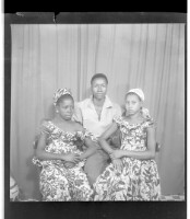 365. EAP449/2/12/365 Reference (shelfmark): EAP449/2/12/365 Title: A man in a dress shirt and pants sitting facing forward in the middle of two girls in dresses and headscarves sitting in profile in the studio. Collection Area: Endangered Archives Programme Languages: Not applicable Date Range: 2nd half od the 20th century Extent: 1 TIFF image