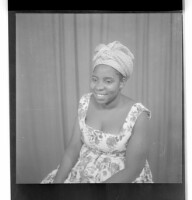 33. EAP449/2/12/33 Reference (shelfmark): EAP449/2/12/33 Title: A woman in a dress sitting facing forward in the studio. Collection Area: Endangered Archives Programme Languages: Not applicable Date Range: 2nd half od the 20th century Extent: 1 TIFF image