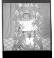 39. EAP449/2/12/39 Reference (shelfmark): EAP449/2/12/39 Title: A baby in a dress sitting in profile on the lap of an unidentified person in the studio. Collection Area: Endangered Archives Programme Languages: Not applicable Date Range: 2nd half od the 20th century Extent: 1 TIFF image