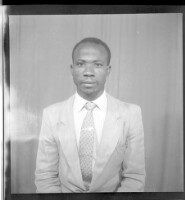 551. EAP449/2/12/551 Reference (shelfmark): EAP449/2/12/551 Title: a man posing in a studio; he is sitting wearing a grey jacket suit with tie Collection Area: Endangered Archives Programme Languages: Not applicable Date Range: 2nd half od the 20th century Extent: 1 TIFF image