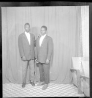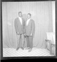 557. EAP449/2/12/557 Reference (shelfmark): EAP449/2/12/557 Title: two men posing in a studio; they are wearing matching black suits with a white shirt Collection Area: Endangered Archives Programme Languages: Not applicable Date Range: 2nd half od the 20th century Extent: 1 TIFF image