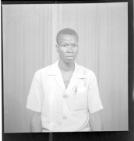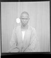 560. EAP449/2/12/560 Reference (shelfmark): EAP449/2/12/560 Title: a man posing in a studio; he is sitting wearing a black robe with a white shirt underneath Collection Area: Endangered Archives Programme Languages: Not applicable Date Range: 2nd half od the 20th century Extent: 1 TIFF image
