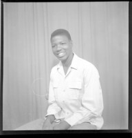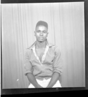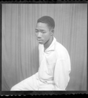 587. EAP449/2/12/587 Reference (shelfmark): EAP449/2/12/587 Title: a young man posing in a studio; wearing a white shirt with a collar and long sleeves Collection Area: Endangered Archives Programme Languages: Not applicable Date Range: 2nd half od the 20th century Extent: 1 TIFF image
