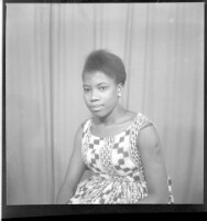 583. EAP449/2/12/583 Reference (shelfmark): EAP449/2/12/583 Title: a woman posing in a studio; wearing a patterned dress, earrings Collection Area: Endangered Archives Programme Languages: Not applicable Date Range: 2nd half od the 20th century Extent: 1 TIFF image