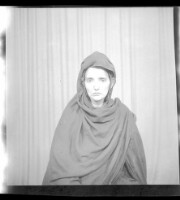 586. EAP449/2/12/586 Reference (shelfmark): EAP449/2/12/586 Title: an Arabic woman posing in a studio; wearing a black outfit that covers the top of the head Collection Area: Endangered Archives Programme Languages: Not applicable Date Range: 2nd half od the 20th century Extent: 1 TIFF image