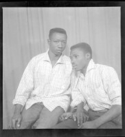 590. EAP449/2/12/590 Reference (shelfmark): EAP449/2/12/590 Title: two young men posing in a studio; wearing matching white shirts with long sleeves Collection Area: Endangered Archives Programme Languages: Not applicable Date Range: 2nd half od the 20th century Extent: 1 TIFF image