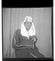 81. EAP449/2/12/81 Reference (shelfmark): EAP449/2/12/81 Title: A man in a boubou and headscarf sitting in profile in the studio. Collection Area: Endangered Archives Programme Languages: Not applicable Date Range: 2nd half od the 20th century Extent: 1 TIFF image