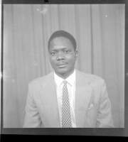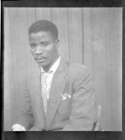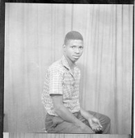 112. EAP449/2/13/112 Reference (shelfmark): EAP449/2/13/112 Title: A young man wearing a white short-sleeved shirt sitting in profile on a stool in the studio. Collection Area: Endangered Archives Programme Languages: Not applicable Date Range: 2nd half od the 20th century Extent: 1 TIFF image