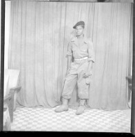 113. EAP449/2/13/113 Reference (shelfmark): EAP449/2/13/113 Title: A man wearing a police uniform standing face-forward in the back of the studio. Collection Area: Endangered Archives Programme Languages: Not applicable Date Range: 2nd half od the 20th century Extent: 1 TIFF image