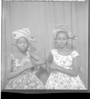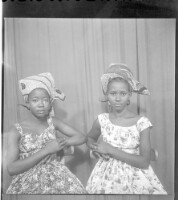 116. EAP449/2/13/116 Reference (shelfmark): EAP449/2/13/116 Title: Two women wearing dresses and head-wraps sitting with their arms crossed face-forward in the studio. Collection Area: Endangered Archives Programme Languages: Not applicable Date Range: 2nd half od the 20th century Extent: 1 TIFF image