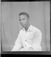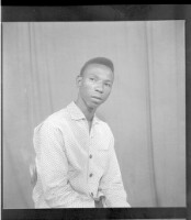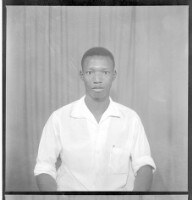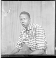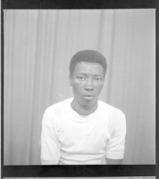 144. EAP449/2/13/144 Reference (shelfmark): EAP449/2/13/144 Title: A young man wearing a short-sleeved t-shirt sitting face-forward on a chair in the studio. Collection Area: Endangered Archives Programme Languages: Not applicable Date Range: 2nd half od the 20th century Extent: 1 TIFF image