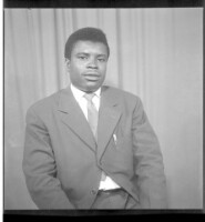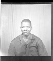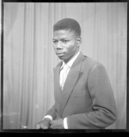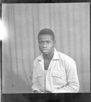 156. EAP449/2/13/156 Reference (shelfmark): EAP449/2/13/156 Title: A man wearing a white shirt and a black suit coat with a pen in the pocket sitting in profile on a chair in the studio. Collection Area: Endangered Archives Programme Languages: Not applicable Date Range: 2nd half od the 20th century Extent: 1 TIFF image