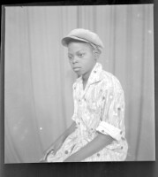 192. EAP449/2/13/192 Reference (shelfmark): EAP449/2/13/192 Title: A young man wearing a white shirt and a cap sitting in profile in the studio. Collection Area: Endangered Archives Programme Languages: Not applicable Date Range: 2nd half od the 20th century Extent: 1 TIFF image