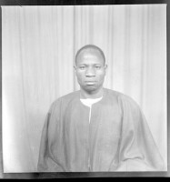 193. EAP449/2/13/193 Reference (shelfmark): EAP449/2/13/193 Title: A man wearing a black boubou sitting face-forward in the studio. Collection Area: Endangered Archives Programme Languages: Not applicable Date Range: 2nd half od the 20th century Extent: 1 TIFF image