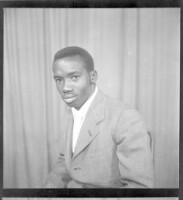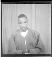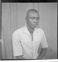 196. EAP449/2/13/196 Reference (shelfmark): EAP449/2/13/196 Title: A man wearing a white t-shirt and black boubou sitting face-forward in the studio. Collection Area: Endangered Archives Programme Languages: Not applicable Date Range: 2nd half od the 20th century Extent: 1 TIFF image