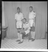 197. EAP449/2/13/197 Reference (shelfmark): EAP449/2/13/197 Title: Three men wearing police uniforms, one sitting on a chair in the middle and the other two standing, all face-forward in the studio. Collection Area: Endangered Archives Programme Languages: Not applicable Date Range: 2nd half od the 20th century Extent: 1 TIFF image