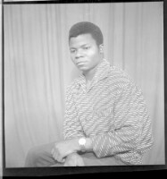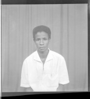 221. EAP449/2/13/221 Reference (shelfmark): EAP449/2/13/221 Title: A man wearing a white short-sleeved shirt with a pen in the pocket sitting face-forward in the studio. Collection Area: Endangered Archives Programme Languages: Not applicable Date Range: 2nd half od the 20th century Extent: 1 TIFF image