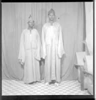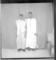223. EAP449/2/13/223 Reference (shelfmark): EAP449/2/13/223 Title: Two men wearing matching large boubous and hats standing face-forward in the studio. Collection Area: Endangered Archives Programme Languages: Not applicable Date Range: 2nd half od the 20th century Extent: 1 TIFF image
