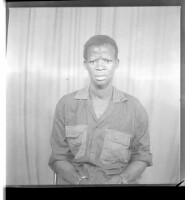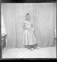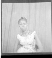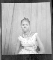 247. EAP449/2/13/247 Reference (shelfmark): EAP449/2/13/247 Title: A young woman wearing a grey dress and a head-wrap standing in profile with her hands in her pockets in the studio. Collection Area: Endangered Archives Programme Languages: Not applicable Date Range: 2nd half od the 20th century Extent: 1 TIFF image