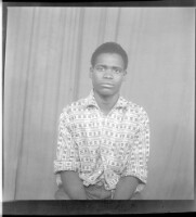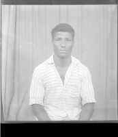 250. EAP449/2/13/250 Reference (shelfmark): EAP449/2/13/250 Title: A young man wearing a black and white shirt sitting face-forward in the studio. Collection Area: Endangered Archives Programme Languages: Not applicable Date Range: 2nd half od the 20th century Extent: 1 TIFF image