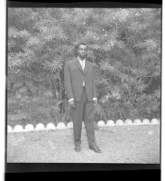 372. EAP449/2/13/372 Reference (shelfmark): EAP449/2/13/372 Title: A man wearing a suit and tie standing in profile in front of flowers. Collection Area: Endangered Archives Programme Languages: Not applicable Date Range: 2nd half od the 20th century Extent: 1 TIFF image