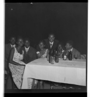 377. EAP449/2/13/377 Reference (shelfmark): EAP449/2/13/377 Title: A family photo of eight people, both men and women around a table filled with bottles in a garden. Collection Area: Endangered Archives Programme Languages: Not applicable Date Range: 2nd half od the 20th century Extent: 1 TIFF image