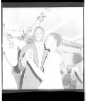 470. EAP449/2/13/470 Reference (shelfmark): EAP449/2/13/470 Title: A man wearing a suit holding the hand of a woman wearing a dress, both standing in profile in a room and in a large crowd. Collection Area: Endangered Archives Programme Languages: Not applicable Date Range: 2nd half od the 20th century Extent: 1 TIFF image