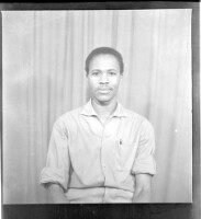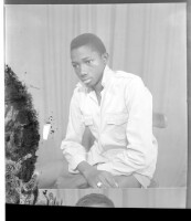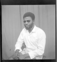 76. EAP449/2/13/76 Reference (shelfmark): EAP449/2/13/76 Title: A man wearing a white long-sleeved shirt with two pockets sitting in profile in the studio. Collection Area: Endangered Archives Programme Languages: Not applicable Date Range: 2nd half od the 20th century Extent: 1 TIFF image