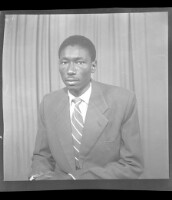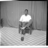 538. EAP449/2/14/538 Reference (shelfmark): EAP449/2/14/538 Title: A young man wearing a black short-sleeved shirt sitting face-forward in the studio. Collection Area: Endangered Archives Programme Languages: Not applicable Date Range: 2nd half od the 20th century Extent: 1 TIFF image