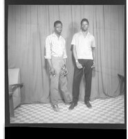 143. EAP449/2/15/143 Reference (shelfmark): EAP449/2/15/143 Title: Two men wearing shirts and pants, one standing face-forward and the other standing in profile in the studio. Collection Area: Endangered Archives Programme Languages: Not applicable Date Range: 2nd half od the 20th century Extent: 1 TIFF image