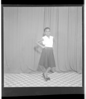 148. EAP449/2/15/148 Reference (shelfmark): EAP449/2/15/148 Title: A girl wearing a shirt and skirt standing face-forward in the studio. Collection Area: Endangered Archives Programme Languages: Not applicable Date Range: 2nd half od the 20th century Extent: 1 TIFF image