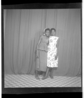 149. EAP449/2/15/149 Reference (shelfmark): EAP449/2/15/149 Title: Two girls wearing dress, pagnes, head wraps, and necklaces, one standing face-forward and the other standing in profile in the studio. Collection Area: Endangered Archives Programme Languages: Not applicable Date Range: 2nd half od the 20th century Extent: 1 TIFF image