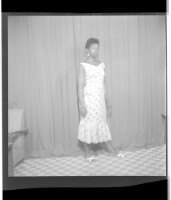 212. EAP449/2/15/212 Reference (shelfmark): EAP449/2/15/212 Title: A woman wearing a dress standing in profile in the studio. Collection Area: Endangered Archives Programme Languages: Not applicable Date Range: 2nd half od the 20th century Extent: 1 TIFF image