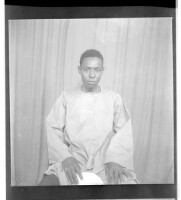 213. EAP449/2/15/213 Reference (shelfmark): EAP449/2/15/213 Title: A man wearing a shirt sitting face-forward in the studio. Collection Area: Endangered Archives Programme Languages: Not applicable Date Range: 2nd half od the 20th century Extent: 1 TIFF image