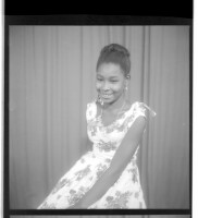 234. EAP449/2/15/234 Reference (shelfmark): EAP449/2/15/234 Title: A woman wearing a dress sitting face-forward in the studio. Collection Area: Endangered Archives Programme Languages: Not applicable Date Range: 2nd half od the 20th century Extent: 1 TIFF image