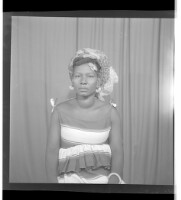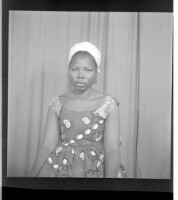 252. EAP449/2/15/252 Reference (shelfmark): EAP449/2/15/252 Title: A woman wearing a dress and head wrap sitting face-forward in the studio. Collection Area: Endangered Archives Programme Languages: Not applicable Date Range: 2nd half od the 20th century Extent: 1 TIFF image