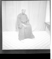 327. EAP449/2/15/327 Reference (shelfmark): EAP449/2/15/327 Title: A man wearing a boubou and hat sitting face-forward in the studio. Collection Area: Endangered Archives Programme Languages: Not applicable Date Range: 2nd half od the 20th century Extent: 1 TIFF image