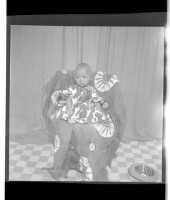 372. EAP449/2/15/372 Reference (shelfmark): EAP449/2/15/372 Title: A baby wearing a dress and necklace sitting face-forward on a chair in the studio. Collection Area: Endangered Archives Programme Languages: Not applicable Date Range: 2nd half od the 20th century Extent: 1 TIFF image