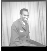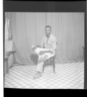 374. EAP449/2/15/374 Reference (shelfmark): EAP449/2/15/374 Title: A man wearing a shirt and pants sitting face-forward in the studio. Collection Area: Endangered Archives Programme Languages: Not applicable Date Range: 2nd half od the 20th century Extent: 1 TIFF image