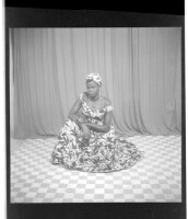 380. EAP449/2/15/380 Reference (shelfmark): EAP449/2/15/380 Title: A woman wearing a dress, head wrap, and necklace sitting in profile in the studio. Collection Area: Endangered Archives Programme Languages: Not applicable Date Range: 2nd half od the 20th century Extent: 1 TIFF image