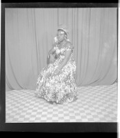 419. EAP449/2/15/419 Reference (shelfmark): EAP449/2/15/419 Title: A woman wearing a dress, pagne, head wrap, and necklace sitting in profile in the studio. Collection Area: Endangered Archives Programme Languages: Not applicable Date Range: 2nd half od the 20th century Extent: 1 TIFF image