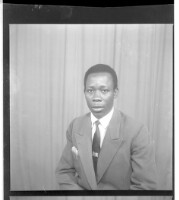 424. EAP449/2/15/424 Reference (shelfmark): EAP449/2/15/424 Title: A man wearing a jacket and tie sitting face-forward in the studio. Collection Area: Endangered Archives Programme Languages: Not applicable Date Range: 2nd half od the 20th century Extent: 1 TIFF image