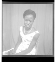 427. EAP449/2/15/427 Reference (shelfmark): EAP449/2/15/427 Title: A woman wearing a dress and necklace sitting face-forward in the studio. Collection Area: Endangered Archives Programme Languages: Not applicable Date Range: 2nd half od the 20th century Extent: 1 TIFF image