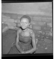 453. EAP449/2/15/453 Reference (shelfmark): EAP449/2/15/453 Title: A woman wearing a dress and necklace sitting in profile in front of a wall. Collection Area: Endangered Archives Programme Languages: Not applicable Date Range: 2nd half od the 20th century Extent: 1 TIFF image