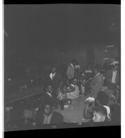 460. EAP449/2/15/460 Reference (shelfmark): EAP449/2/15/460 Title: A man wearing a suit holding the hand of a woman wearing a t-shirt and skirt, both standing in profile in a room with a crowd. Collection Area: Endangered Archives Programme Languages: Not applicable Date Range: 2nd half od the 20th century Extent: 1 TIFF image