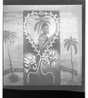 571. EAP449/2/15/571 Reference (shelfmark): EAP449/2/15/571 Title: Profile view of a woman wearing a dress, standing in the studio behind a frame. Collection Area: Endangered Archives Programme Languages: Not applicable Date Range: 2nd half od the 20th century Extent: 1 TIFF image