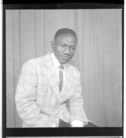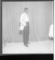572. EAP449/2/15/572 Reference (shelfmark): EAP449/2/15/572 Title: Profile view of a man standing in the studio wearing a jacket, tie, and pants. Collection Area: Endangered Archives Programme Languages: Not applicable Date Range: 2nd half od the 20th century Extent: 1 TIFF image